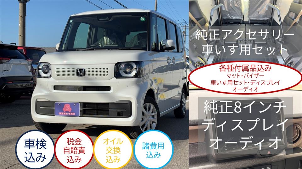 「車検」「税金・自賠責」「オイル交換」「諸費用」「付属品」すべてコミコミ♪